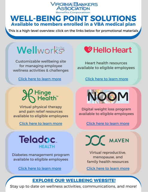 The VBA Benefits Corp. is hosting a virtual Well-being Summit on Thursday, February 5, 2026, from 1-3pm. This is a great opportunity for HR Administrators to learn about wellness trends, build multi-year wellness strategies, and leverage point solutions to drive measurable outcomes. Click on the flyer below to register by 1/30/2026.