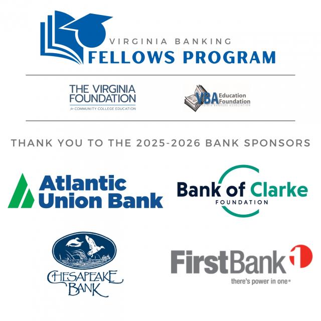 Four Virginia banks have also committed a total of $50,000 to sponsor a student from each of the following community colleges for the 2025-2026 Virginia Banking Fellows Program: