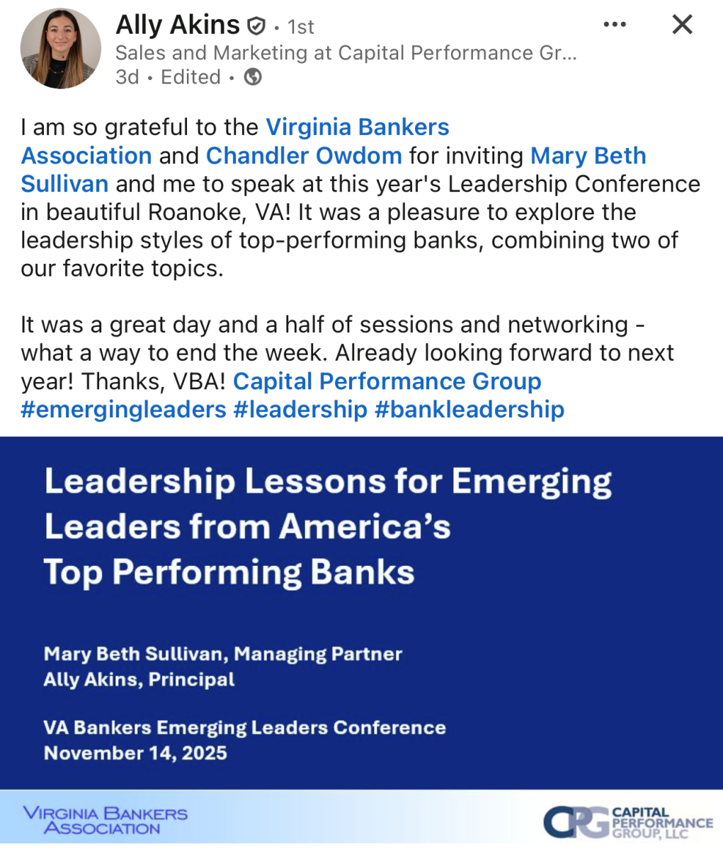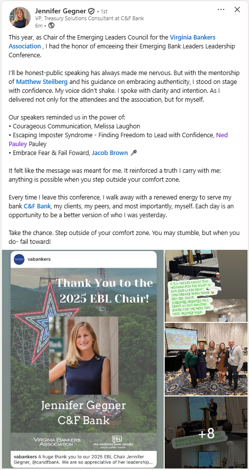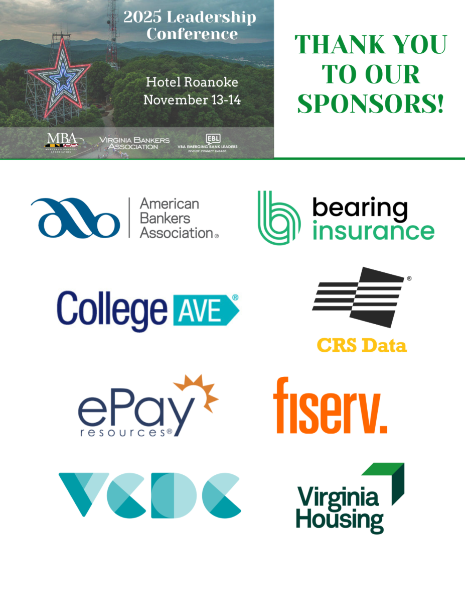 - Moderated By 2025 VBA Emerging Bank Leaders Chair, Jennifer Gegner, C&F Bank