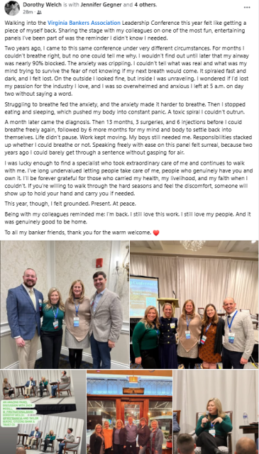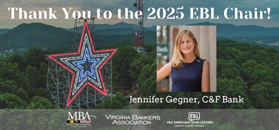 Thank you to Jennifer Gegner, C&F Bank, for serving as EBL chair over the last year and for presiding over this year’s event. You can learn more about Jennifer in her Virginia Banking Monthly Q&A here.