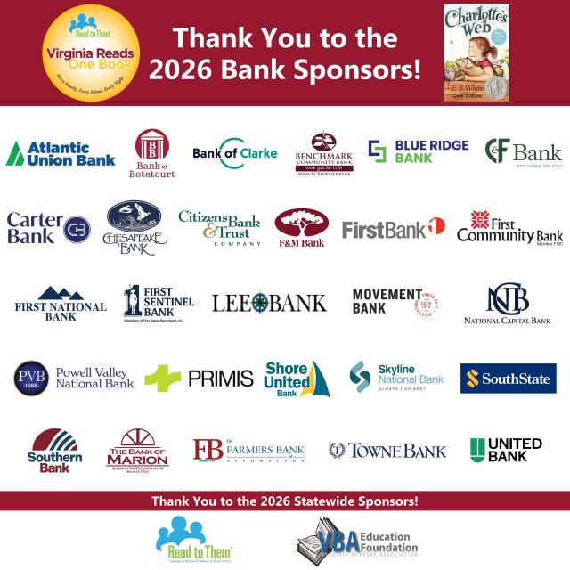 Virginia Bankers Association Education Foundation and Banks Across Virginia Contribute Nearly $125,000 to Sponsor More than 17,000 Virginia Students and Staff for Virginia Reads One Book