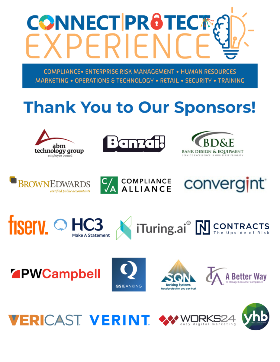 More than 220 bankers and industry partners joined us in Roanoke from March 25-27 for the Connect|Protect Experience. This event brought together banking professionals in the areas of marketing, human resources, retail banking, training, security, enterprise risk management, compliance, and operations and technology. This year’s event featured five general sessions and five rounds of concurrent breakout sessions, during which attendees uncovered new ideas, trends, and developments in banking.