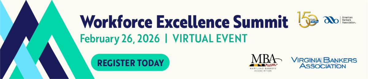 On February 26, nearly 300 bankers from across the country joined us for the ABA/MBA/VBA Workforce Excellence Summit. During this virtual event, attendees learned how to exceed their own expectations by investing in their people and committing to a strong culture of leadership, collaboration and accountability while improving profitability, unlocking innovation and retaining top talent through the art of workforce excellence.
